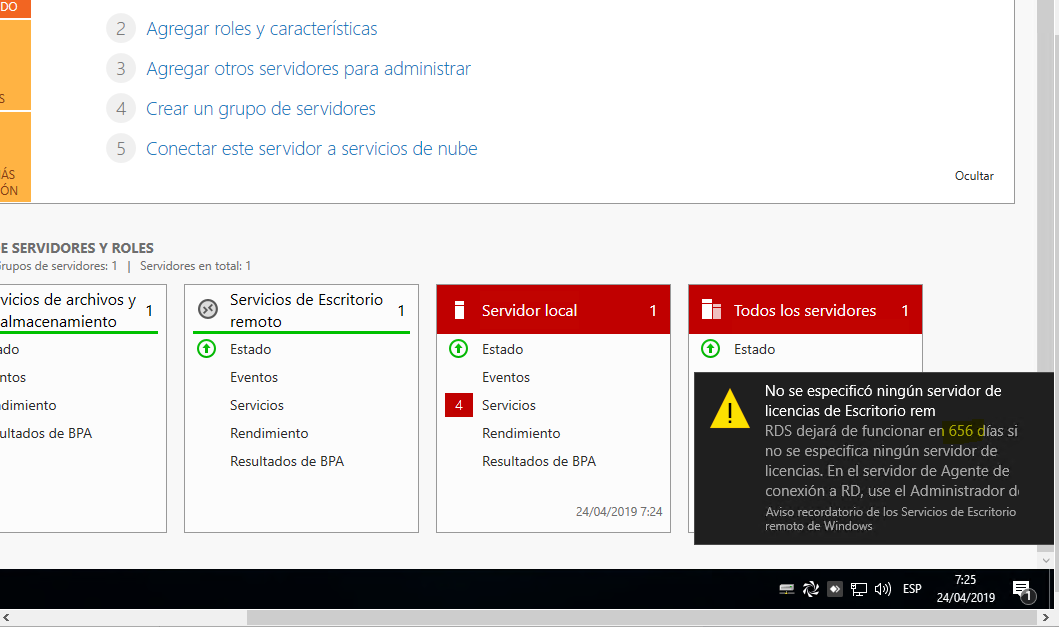 - Instalar rol de servicio de escritorio remoto en windows server 2012 o servicio de escritorio remoto en windows server 2016, si ya instalo el servcio pasar al punto 2.
